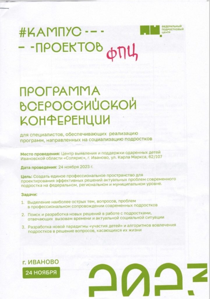 24 ноября 2023г. на базе Центра выявления и поддержки одаренных детей « Солярис» состоялась Всероссийская конференция для специалистов, обеспечивающих реализацию программ, направленных на социализацию подростков.
