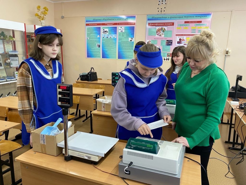 Сегодня ребята познакомились со специальностью «Товароведение и экспертиза качества потребительских товаров», попробовали работу на контрольно –кассовой машине, произвели взвешивание товара. С интересом устанавливали подлинность товара с использованием штрих-кода.
