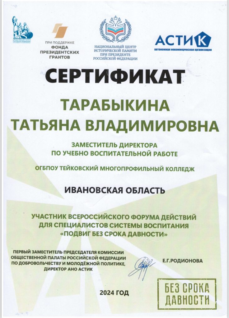Заместитель директора по учебно-воспитательной работе нашего колледжа — Тарабыкина Татьяна Владимировна, приняла участие в программе форума.