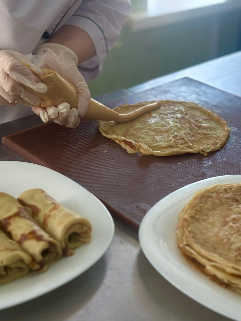 ✨Обучающиеся получили навыки приготовления классического блинного теста, отработали один из видов фаршировки, повторили правила эксплуатации теплового оборудования и технику безопасности при работе в мастерской.