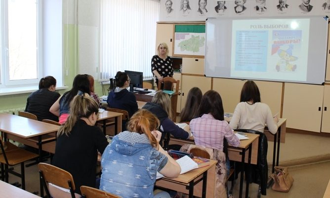 28 апреля 2016г. в рамках гражданско-патриотического воспитания молодежи, преподавателем обществознания Меркурьевой В.А. проведен Урок в форме ролевой игры «Что такое выборы?»
