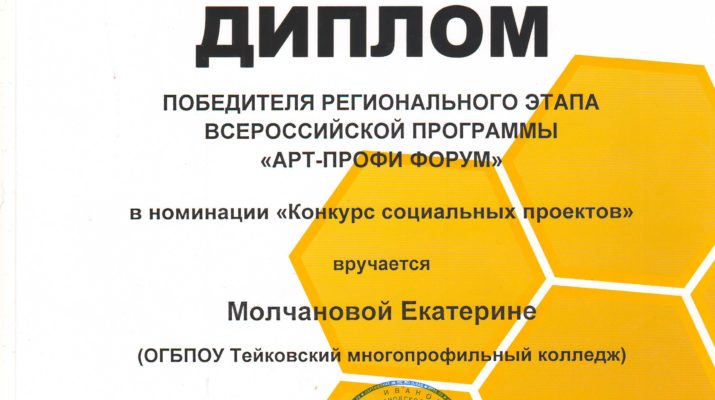 10 марта в Ивановском доме национальностей прошло финальное мероприятие регионального этапа Всероссийской программы «Арт-Профи Форум». Наш колледж представляла Молчанова Екатерина в номинации «Конкурс социальных