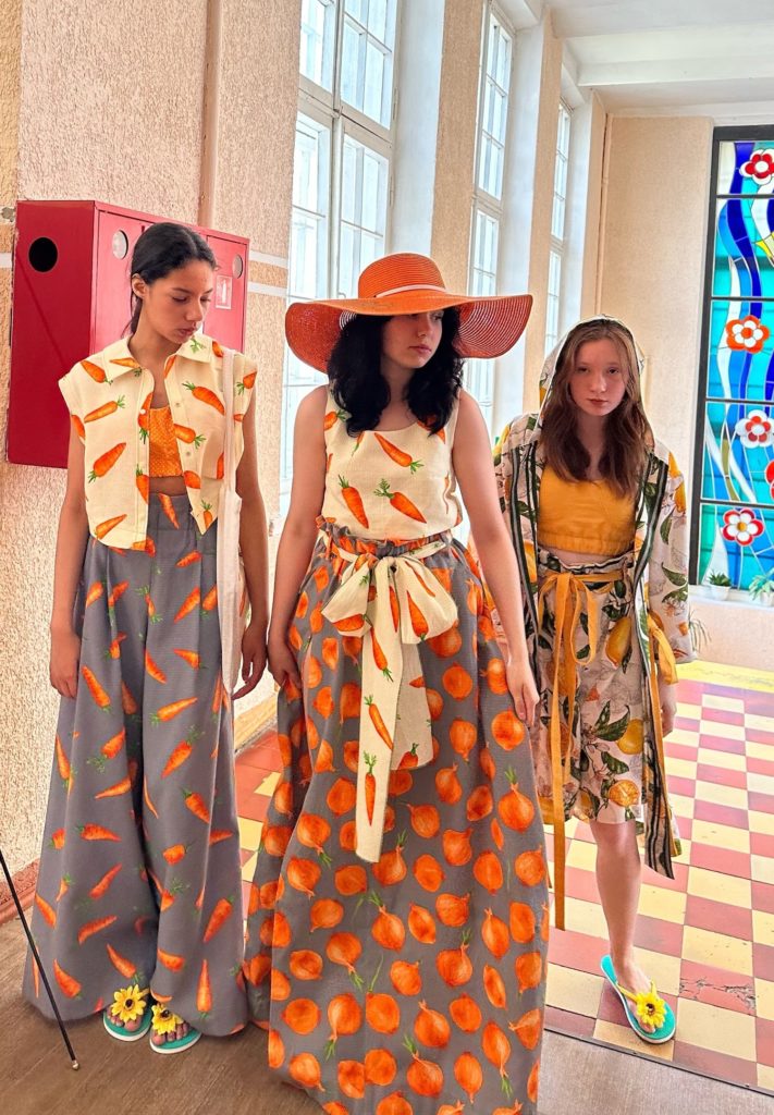 Модели были изготовлены из тканей ООО «Тейковский хлопчатобумажный комбинат» в целях популяризации тканей , изготовливаемых на предприятиях города. Выражаем благодарность в оказании помощи в предоставлении тканей для пошива моделей одежды.