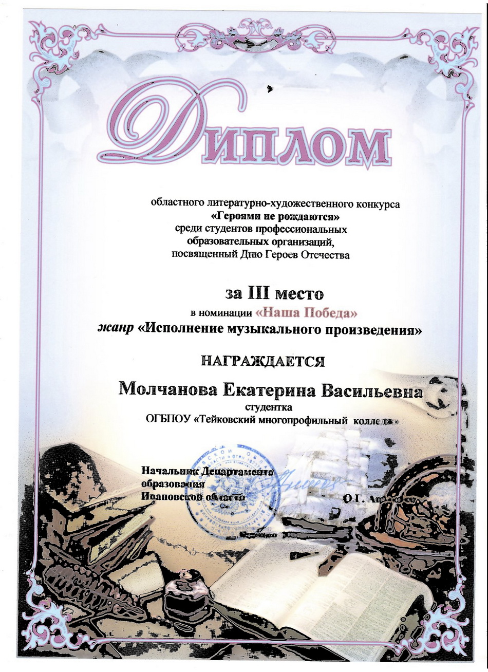 09 декабря 2016г. в Ивановском колледже культуры прошло награждение участников областного литературно-художественного конкурса «Героями не рождаются», посвященного Дню Героев Отечества.