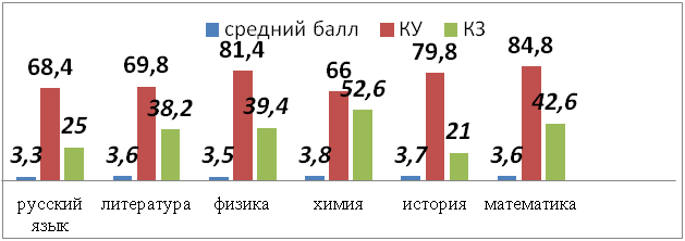 Диаграмма отражающая итоги срезовых работ по общеобразовательным предметам: