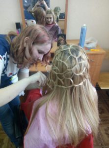 Во время проведения мероприятия обучающиеся выполняли практическое задание «Женская воздушная укладка с элементами плетения кос с петлями». Задание включало выполнение следующих видов работ: