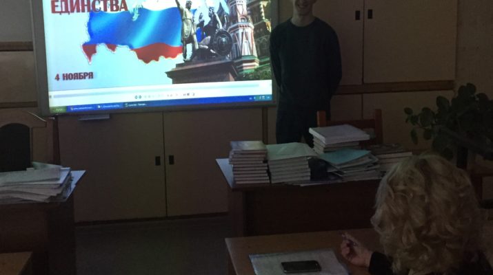 02 ноября классными руководителями проведены классные часы, посвященные «Дню народного единства». Классные руководители рассказали обучающимся об истории возникновения данного праздника, о героях — защитниках России. Был показан видеофильм «С чего начинается Родина?».