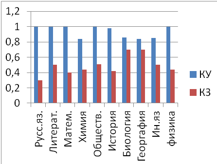 Соотношение КУ И КЗ по результатам срезовой контрольной работы