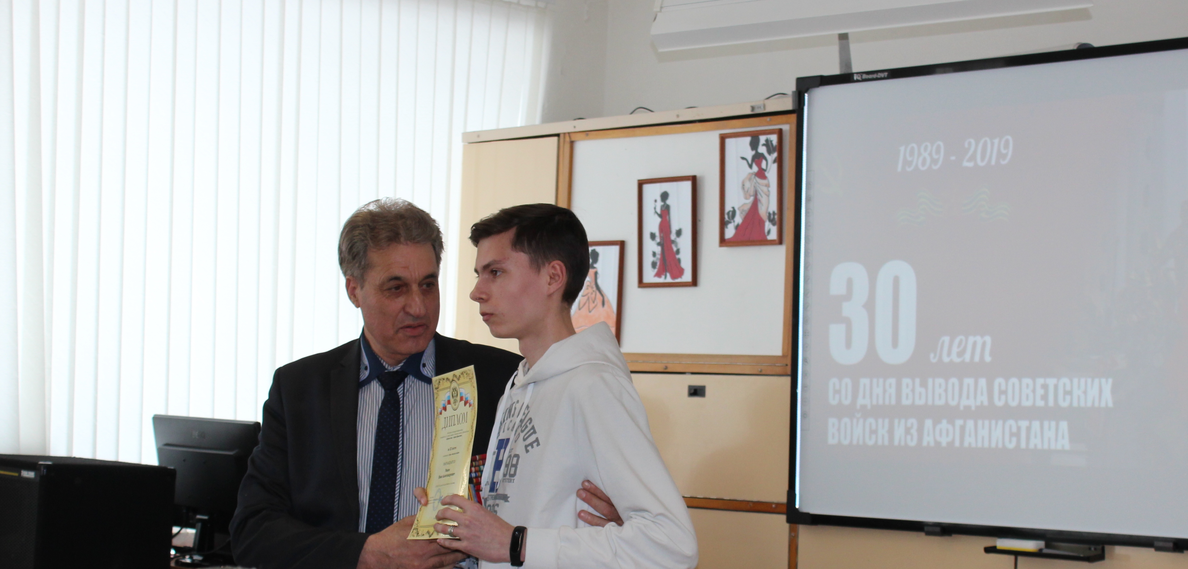 На подведение итогов собрались студенты и их наставники со всей области. Это учащиеся из областного центра и близ лежащих городов: Кохма, Фурманов, Кинешма, Приволжск, Вичуга. и т.д Подведение конкурса прошло по семи номинациям: «Герои, живущие рядом», «Ими гордимся, и память их чтим…», «Они прошли дорогами Афганистана», «Страницы истории Афганистана», «Афганистан, подвиг, боль и страдания», видеоработы о деятельности волонтёрских организаций профессиональных образовательных организаций об оказании помощи участникам военных действий или об увековечивании памяти погибших военнослужащих в республике Афганистан , видеоработы о мероприятиях, проводимых в честь 30-летия вывода Советских войск из Афганистана. Все победители и участники были награждены грамотами и подарками, которые вручали, что особенно приятно, ветераны-участники боевых действий в Афганистане. Это и руководитель регионального центра военно-патриотического воспитания Фокин П.А., преподаватель, руководитель военно -патриотического клуба Ивановского колледжа пищевой промышленности Редька В.Г., Скворцов Андрей Витальевич, член совета областной общественной организации инвалидов войны и военной травмы а Афганистане «Побратим» и Мераджуддин Абдул Азиз, председатель «Общество русско-афганской дружбы», ветеран боевых действий в Афганистане, майор армии Афганистана.