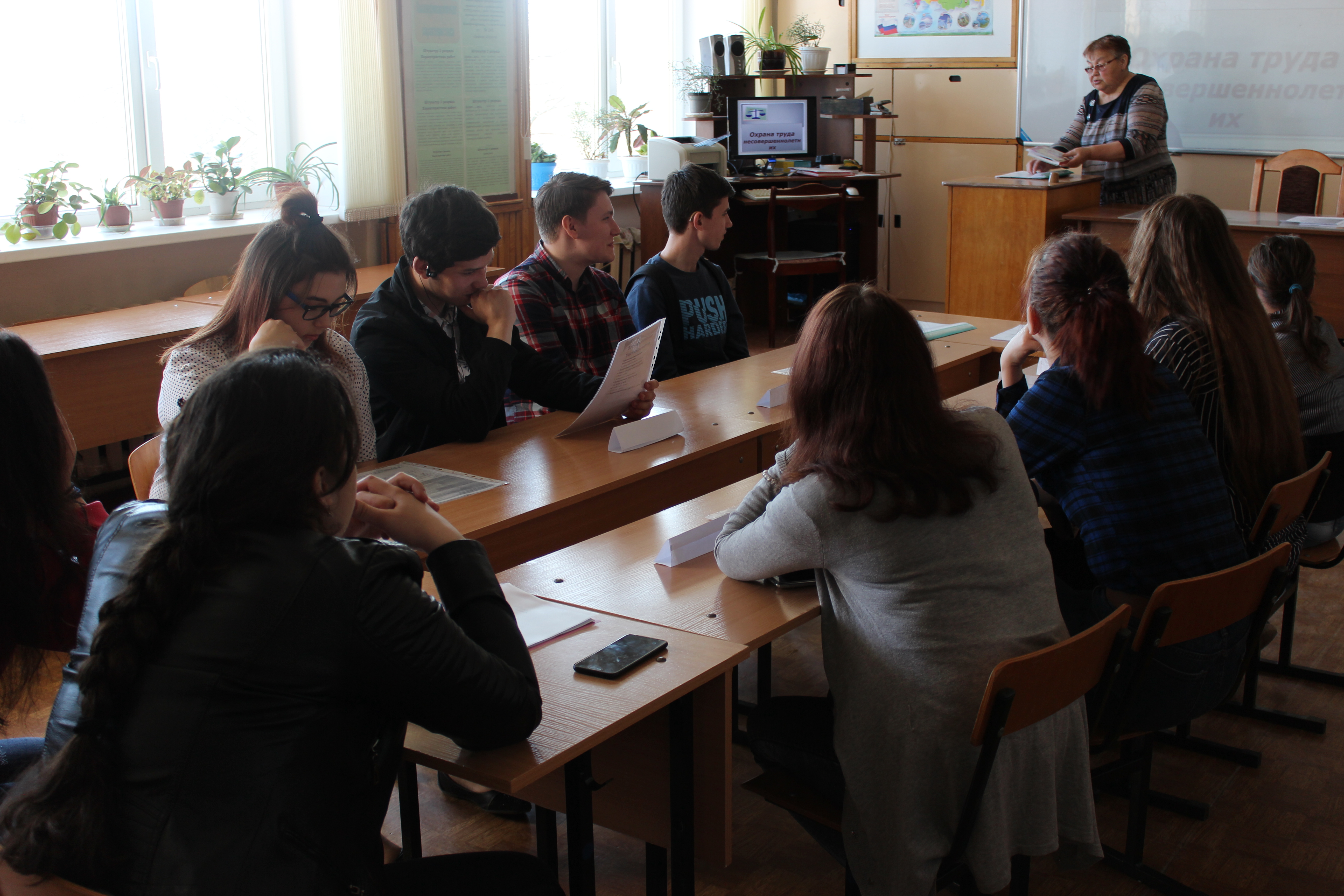 26.04.2019г. в рамках мероприятий, посвященных Всемирному дню охраны труда, преподавателем спецдисциплин Амирхановой А.П. проведен «Круглый стол» на тему: Охрана труда несовершеннолетних. В мероприятии приняли участие обучающиеся 1 курса. В ознакомительных целях были рассмотрены нормативные документы, регламентирующие труд несовершеннолетних подростков. Обучающиеся с интересом смотрели презентации, задавали вопросы и коллективно находили правильные ответы.