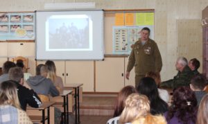 На него были приглашены воины интернационалисты: Краснянский Михаил Степанович и Демочкин Евгений Валерьевич. В ходе урока обучающимся напомнили историю возникновения данного конфликта и участия в нем вооруженных сил Советского Союза. В апреле 1978 г. в Афганистане произошел переворот, позднее названный Апрельской революцией. К власти пришли афганские коммунисты. Правительство возглавил писатель Нур Мухаммед Тараки. Однако уже через несколько месяцев внутри правящей партии разгорелась острая борьба. В августе 1979 г. вспыхнуло противоборство между двумя лидерами партии — Тараки и Амином. 16 сентября Тараки сместили с поста, исключили из партии и взяли под стражу.