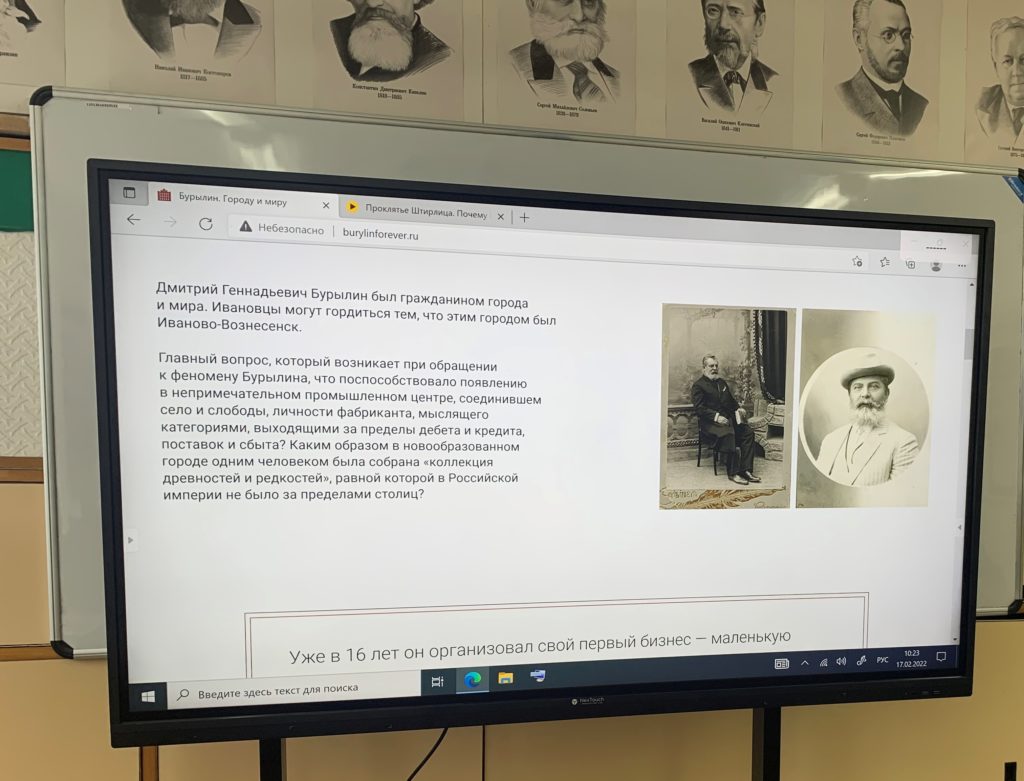 16 февраля 2022г. классным руководителем Хворостухиной О.Н. проведен классный час «Д. Бурылин-известный меценат Ивановской области».