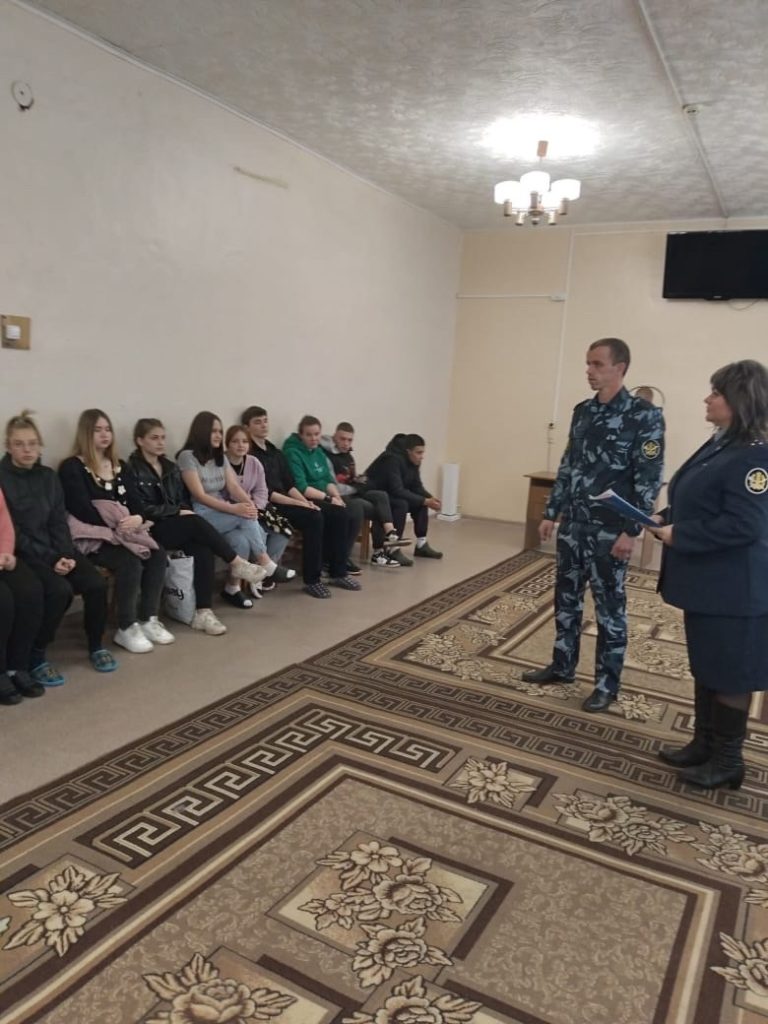 11.10.2023 г.с обучающимися Тейковского многопрофильного колледжа, в целях профилактики административных правонарушений и преступлений, состоялась встреча с психологом УИИ УФСИН России по Ивановской области — Добкиной О.Н. и инспектором — Никитиным С.В. Также несовершеннолетним был показан фильм «Задумайся о жизни» с целью профилактики употребления наркотических средств.