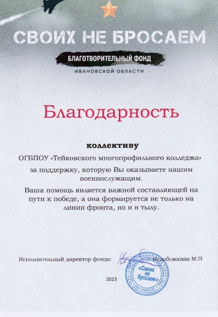 Коллектив Тейковского многопрофильного колледжа принимает активное участие в поддержке инициатив фонда.