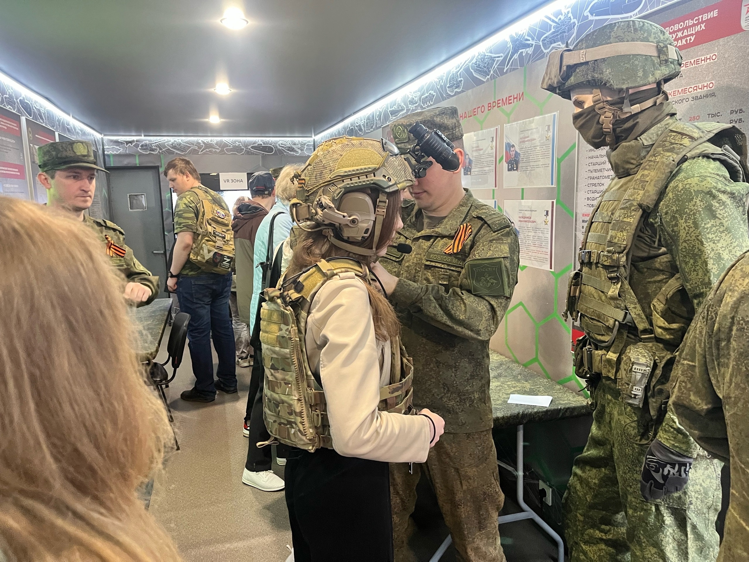 У каждого вагона была своя тематика. В одном — ребята смогли почувствовать себя оператором разведывательного беспилотника, в другом – командиром боевого корабля, в третьем – познакомились со стрелковым оружием иностранных государств. Побывали на полевой кухне и подкрепились вкусной кашей.🥣