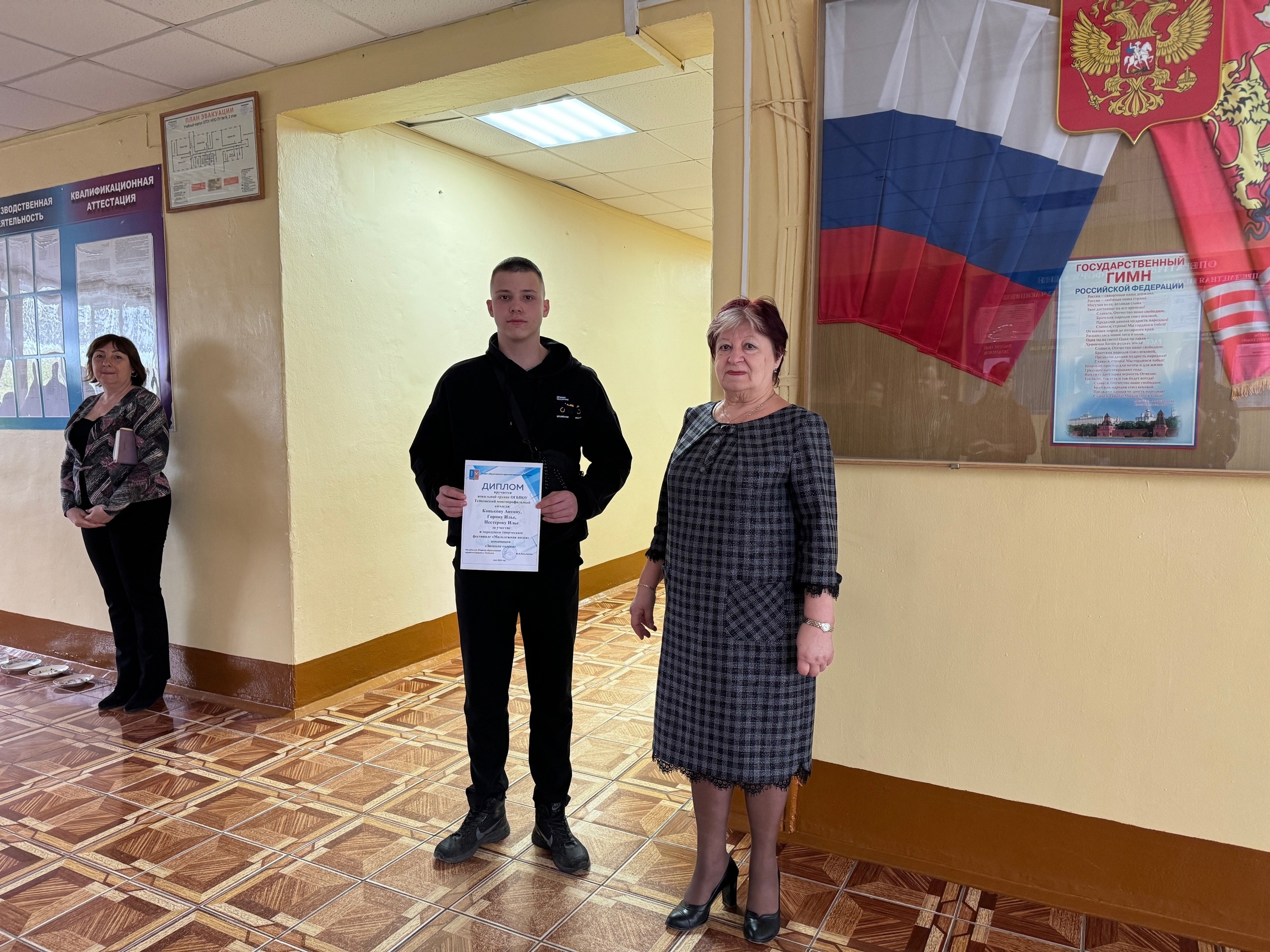Сегодня в Тейковском многопрофильном колледже на линейке были вручены Дипломы участникам ГОРОДСКОГО ТВОРЧЕСКОГО ФЕСТИВАЛЯ «МОЛОДЕЖНАЯ ВЕСНА».