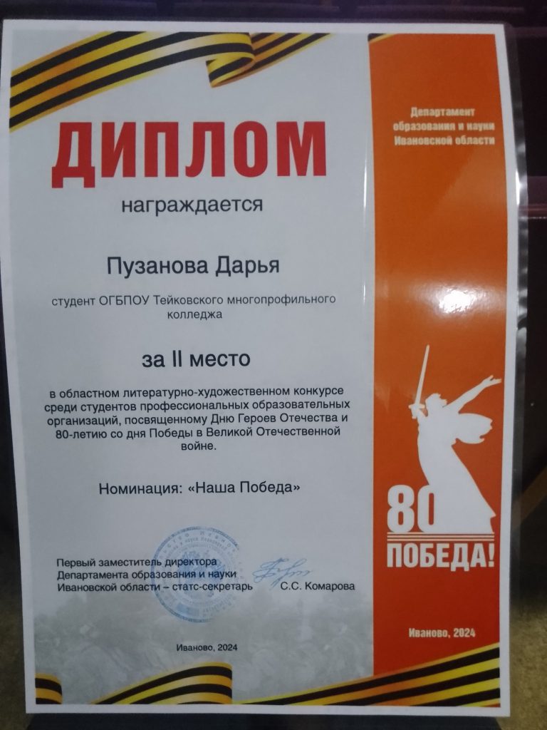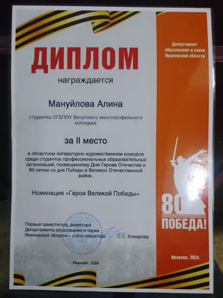 5 декабря в торжественной обстановке на базе Ивановского колледжа культуры прошло подведение итогов областного литературно- художественного конкурса, посвящённого Дню Героев Отечества и 80- летию Победы в Великой Отечественной войне.