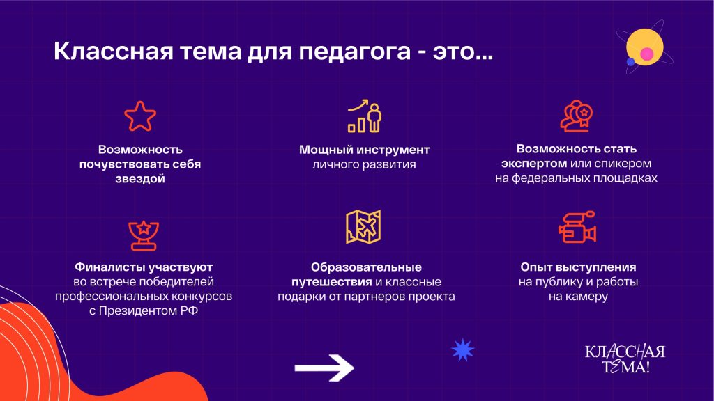 Учитывая высокую социальную значимость мероприятий, просим проинформировать педагогических работников о возможности принять участие в проектах, а также разместить информацию о Форуме и старте Всероссийского отбора «Классная Тема!» на страницах в социальных сетях.